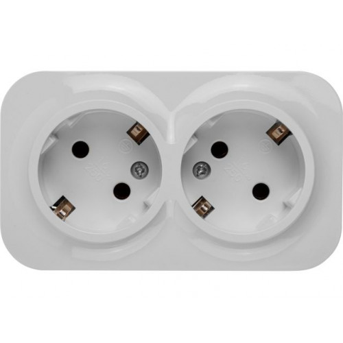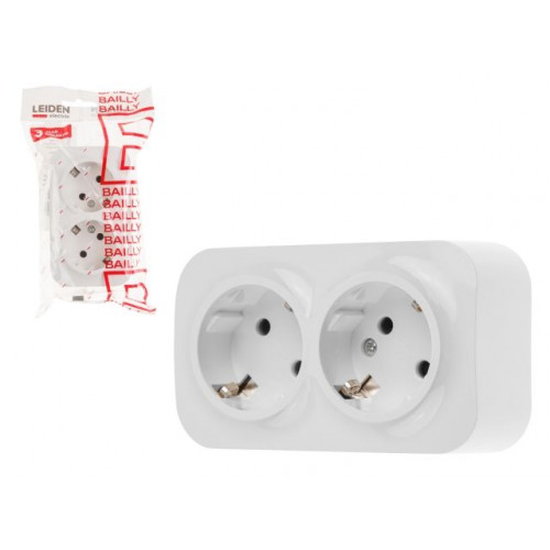 Розетка 2-ая (открытая, с/з) белая, Bailly, LEIDEN ELECTRIC