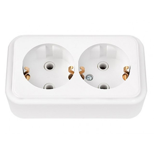 Розетка 2-ая (открытая, с/з) белая, Пралеска, Bylectrica