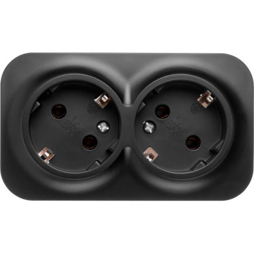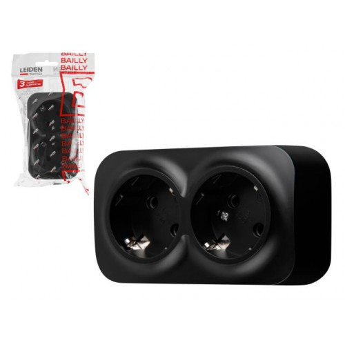 Розетка 2-ая (открытая, с/з) черная, Bailly, LEIDEN ELECTRIC