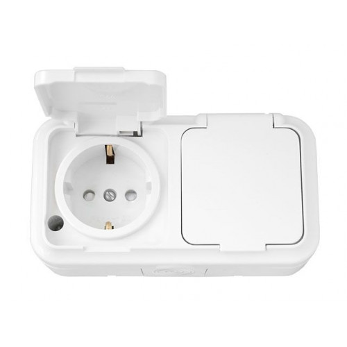Розетка 2-ая (открытая, с/з, з/ш, брызг. защ.) белая, Пралеска Аква, BYLECTRICA