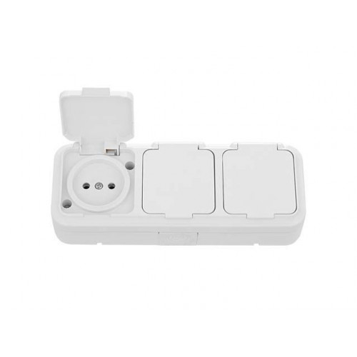 Розетка 3-ая (открытая, б/з, брызг. защ.) белая, Пралеска Аква, Bylectrica