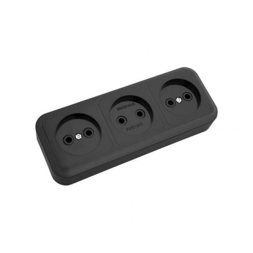 Розетка 3-ая (открытая, б/з) черная, Пралеска, Bylectrica