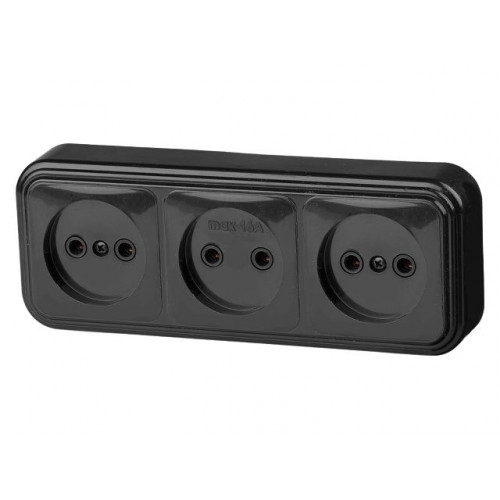 Розетка 3-ая (открытая, б/з) черная, Стандарт, Юпитер