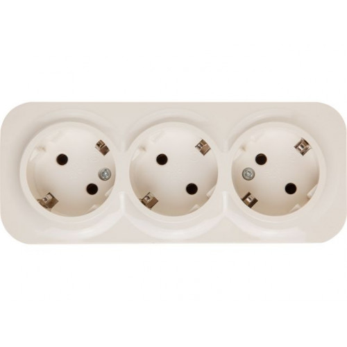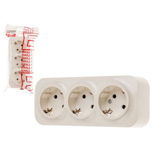 Розетка 3-ая (открытая, с/з) бежевая, Bailly, LEIDEN ELECTRIC