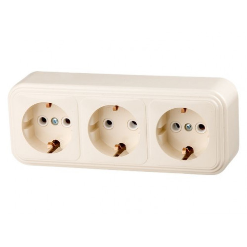 Розетка 3-ая (открытая, с/з) бежевая, Стандарт, Юпитер