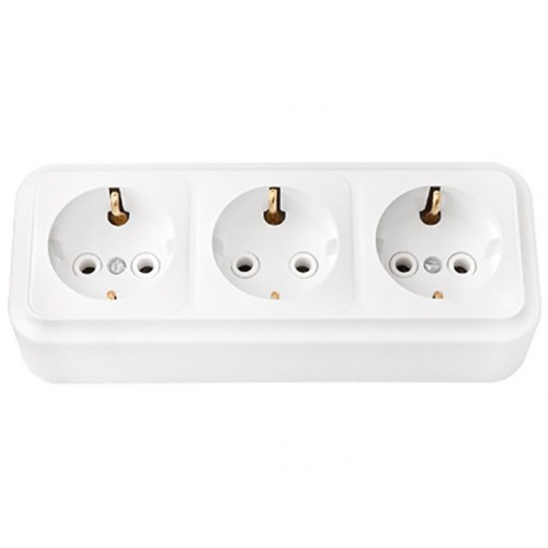 Розетка 3-ая (открытая, с/з) белая, Пралеска, Bylectrica