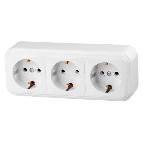 Розетка 3-ая (открытая, с/з) белая, Стандарт, Юпитер