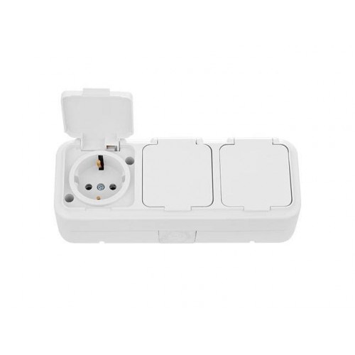 Розетка 3-ая (открытая, с/з, брызг. защ.) белая, Пралеска Аква, Bylectrica