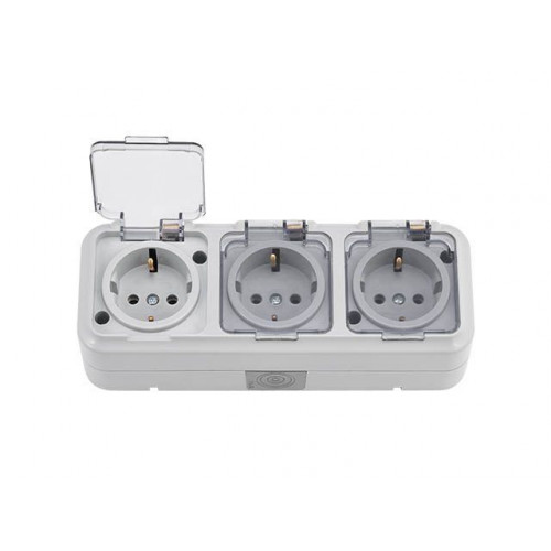 Розетка 3-ая (открытая, с/з, брызг. защ.) серая, Пралеска Аква, Bylectrica