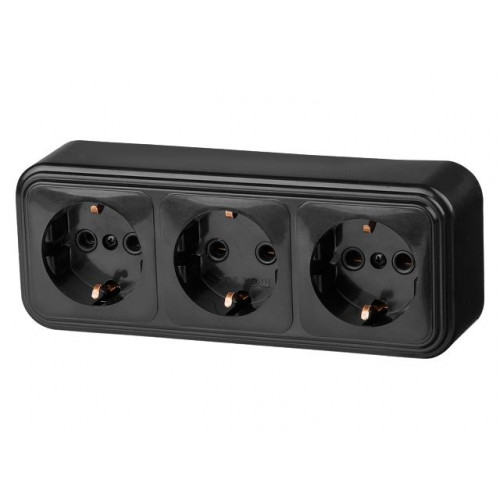 Розетка 3-ая (открытая, с/з) черная, Стандарт, Юпитер