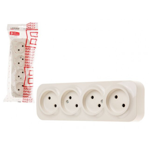 Розетка 4-ая (открытая, б/з) бежевая, Bailly, LEIDEN ELECTRIC