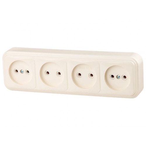 Розетка 4-ая (открытая, б/з) бежевая, Стандарт, Юпитер
