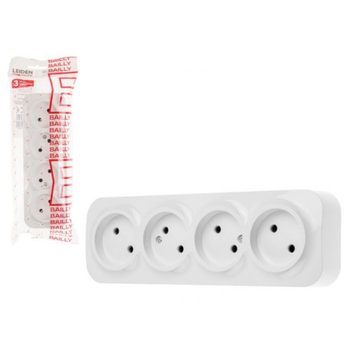 Розетка 4-ая (открытая, б/з) белая, Bailly, LEIDEN ELECTRIC