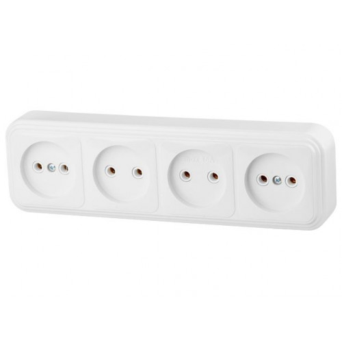 Розетка 4-ая (открытая, б/з) белая, Стандарт, Юпитер