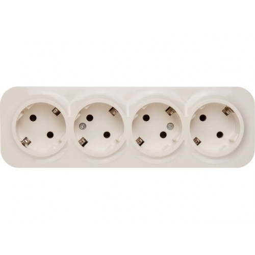 Розетка 4-ая (открытая, с/з) бежевая, Bailly, LEIDEN ELECTRIC