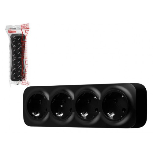 Розетка 4-ая (открытая, с/з) черная, Bailly, LEIDEN ELECTRIC