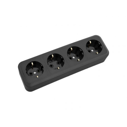 Розетка 4-ая (открытая, с/з) черная, Пралеска, Bylectrica