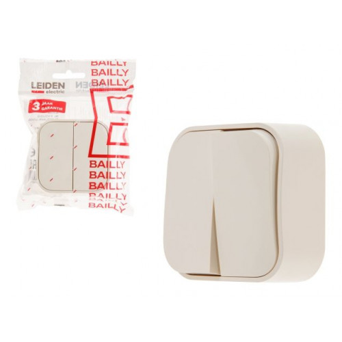 Выключатель 2 клав. (открытый, 10А) бежевый, Bailly, LEIDEN ELECTRIC
