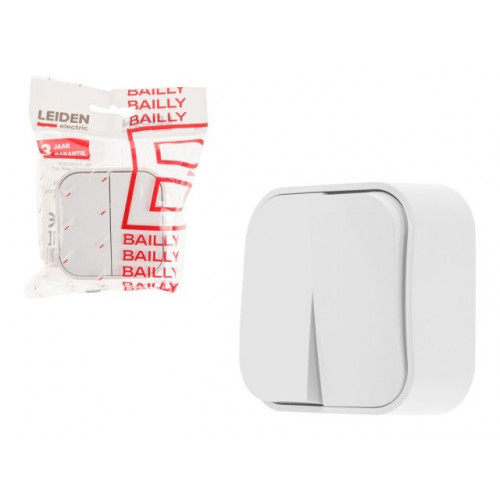 Выключатель 2 клав. (открытый, 10А) белый, Bailly, LEIDEN ELECTRIC
