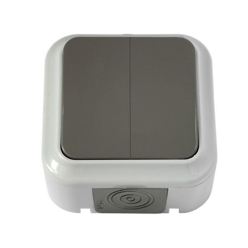 Выключатель 2 клав. (открытый, 6А, брызг. защ.) серый, Пралеска Аква, Bylectrica
