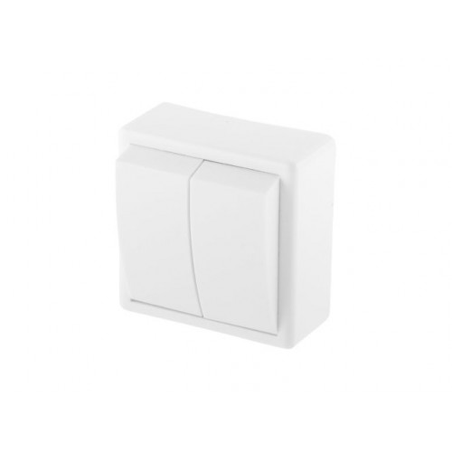 Выключатель 2 клав. (открытый, до 6А) белый, Эконом, Юпитер