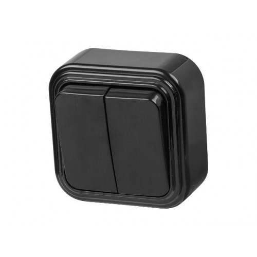 Выключатель 2 клав. (открытый, до 6А) черный, Стандарт, Юпитер