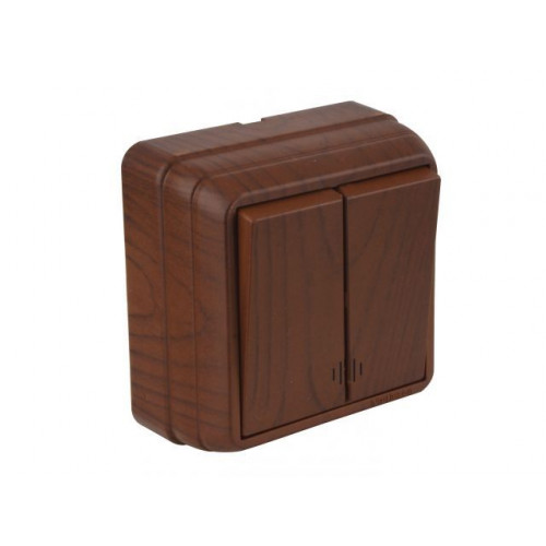 Выключатель 2-клав. (с подсветкой, открытый) орех, BRON, MUTLUSAN