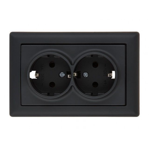 Розетка 2-ая (скрытая, с/з) черная, DARIA, MUTLUSAN