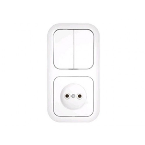 Блок выкл. 2 клав. + розетка (скрытая, б/з) белая, Гармония, BYLECTRICA