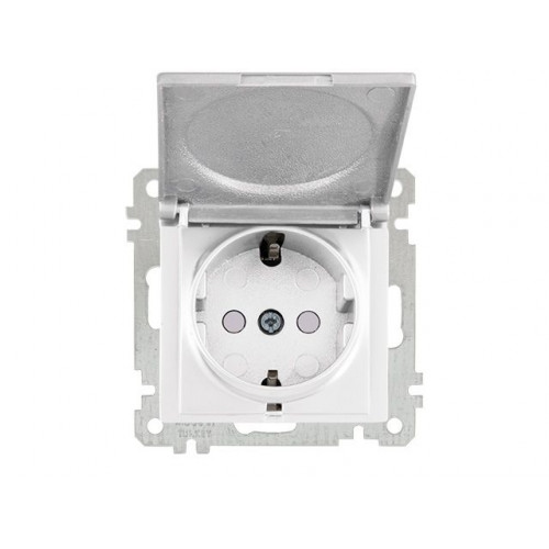 Розетка 1-ая (скр, б/рамки, с/з,шторки, с крышкой) белая, CANDELA (DARIA), MUTLUSAN