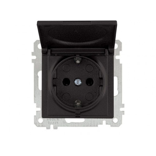 Розетка 1-ая (скрытая, без рамки, с/з, с крышкой) черная, DARIA, MUTLUSAN