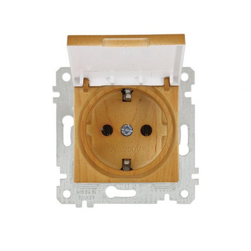 Розетка 1-ая (скрытая, без рамки, с/з, с крышкой) дуб, RITA, MUTLUSAN