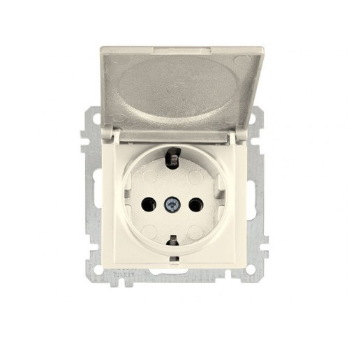 Розетка 1-ая (скрытая, без рамки, с/з, с крышкой) кремовая, DARIA, MUTLUSAN