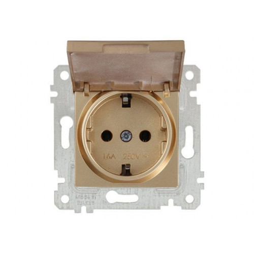 Розетка 1-ая (скрытая, без рамки, с/з, с крышкой) золото, RITA, MUTLUSAN