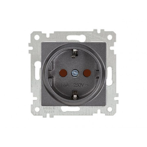 Розетка 1-ая (скрытая, без рамки, с/з, шторки) дымчатая, RITA, MUTLUSAN