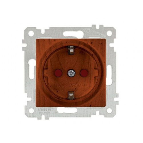 Розетка 1-ая (скрытая, без рамки, с/з, шторки) вишня, RITA, MUTLUSAN