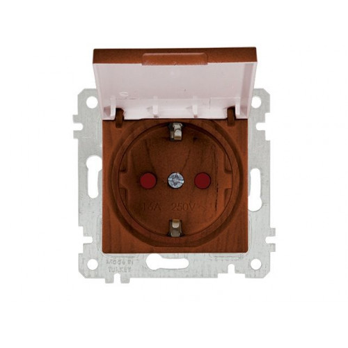 Розетка 1-ая (скрытая, без рамки, с/з, шторки,с крышкой) орех, RITA, MUTLUSAN