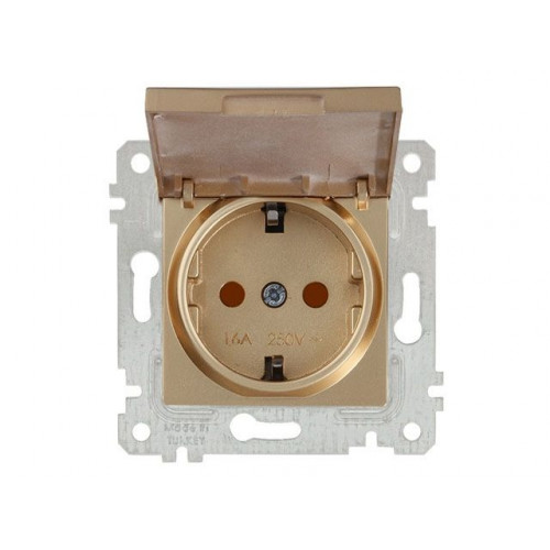 Розетка 1-ая (скрытая, без рамки, с/з, шторки,с крышкой) золото, RITA, MUTLUSAN
