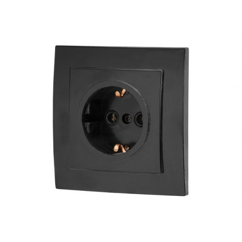 Розетка 1-ая (скрытая, с/з) черная, Стандарт, Юпитер