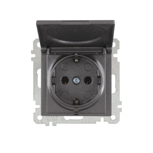 Розетка 1-ая (скрытая, с/з, с крышкой) дымчатая, ELITRA, MUTLUSAN