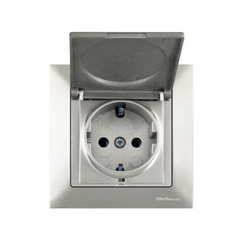 Розетка 1-ая (скрытая, с/з, с крышкой) титан, DARIA, MUTLUSAN