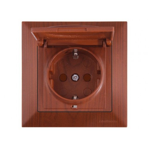 Розетка 1-ая (скрытая, с/з, шторки,с крышкой) вишня, DARIA, MUTLUSAN
