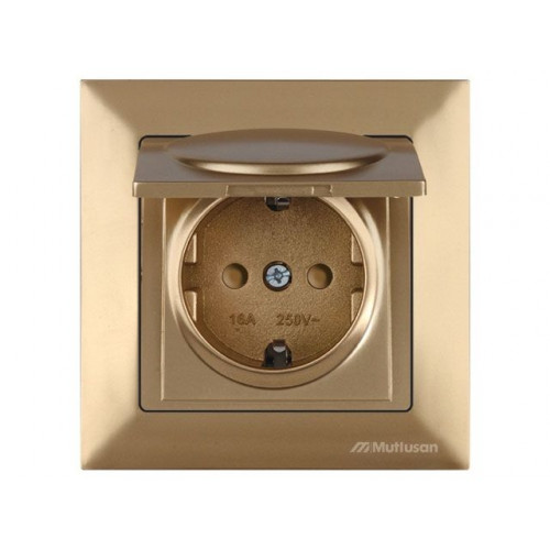 Розетка 1-ая (скрытая, с/з, шторки,с крышкой) золото, DARIA, MUTLUSAN