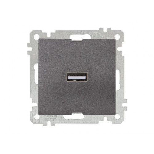 Розетка 1-ая USB (скрытая, без рамки) дымчатая, DARIA, MUTLUSAN
