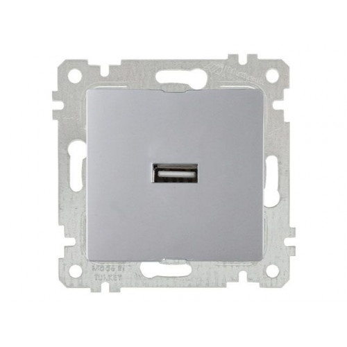 Розетка 1-ая USB (скрытая, без рамки) серебро, RITA, MUTLUSAN