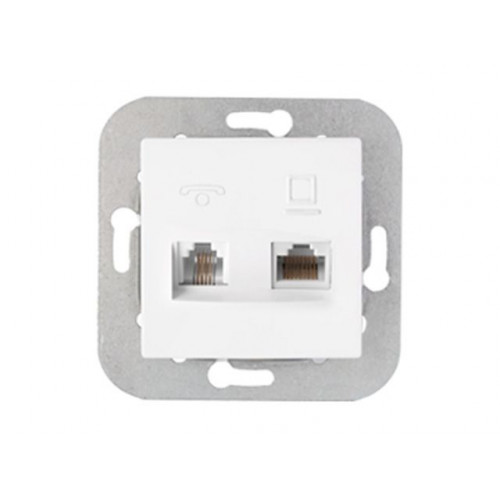 Розетка 2-ая комби телефонная+компьютерная (скрытая) белая, Уют, Bylectrica
