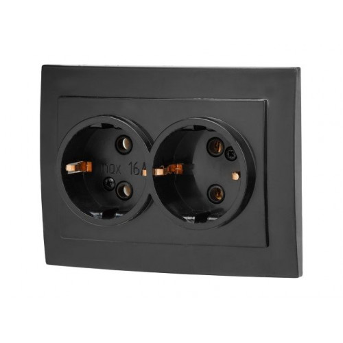 Розетка 2-ая (скрытая, с/з) черная, Стандарт, Юпитер