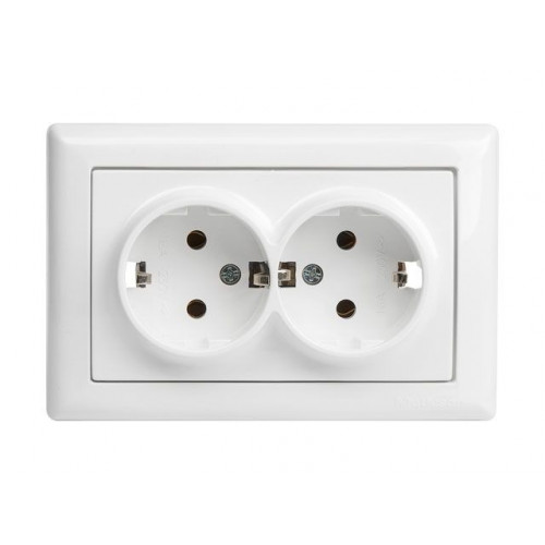 Розетка 2-ая (скрытая, с/з, керамика) белая, DARIA, MUTLUSAN