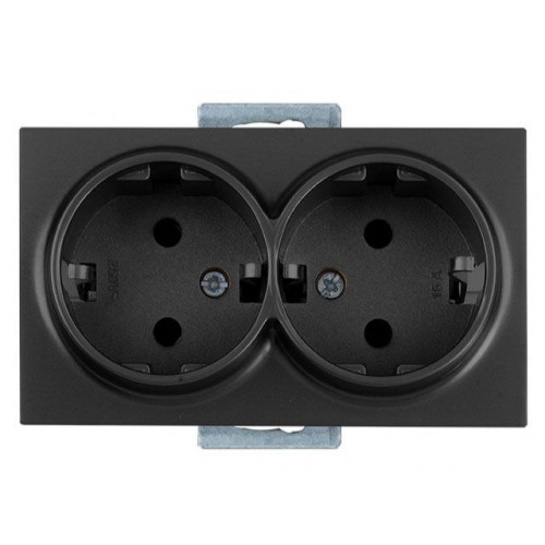 Розетка 2-ая (скрытая, с/з, керамика) черная, DARIA, MUTLUSAN