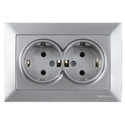 Розетка 2-ая (скрытая, с/з) серебро, DARIA, MUTLUSAN